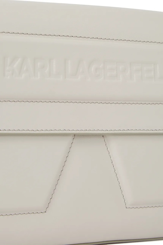 Маленькая сумочка из коллекции Karl Lagerfeld. Модель с застёжкой-крючком, выполнена из натуральной кожи. - Модели линейки Karl Cares изготовлены из материалов, произведенных в ходе устойчивого, экологически чистого процесса производства. - Клапан застегивается на магнит. - Модель на подкладке. - Внутренний накладной карман для удобного и безопасного хранения мелких предметов. - Сумка для ношения в руке или на плече. - Прикрепляемый, более длинный ремешок, нерегулируемый. - Не подходит для формата А4. - Входящий в комплект тканевый чехол защищает изделие от пыли. - Глубина: 7 см. - Высота: 18 см. - Ширина у основания: 30,5 см.
