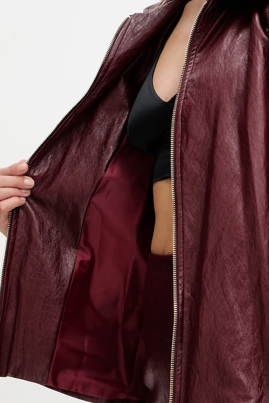 Куртка из коллекции Haveone. Модель без подкладки выполнена из экокожи. - Простой дизайн, не стесняющий движений. - Неутепленная модель с подкладкой. - Застежка-молния. - Модель с воротником. - Пояс на талии. - Накладные карманы. - В плечах вшиты подкладки. - Длина рукава: 54 см. - Длина: 61 см. - Ширина под мышками: 58 см. - Ширина плеч: 47 см. - Размеры указаны для размера: S.