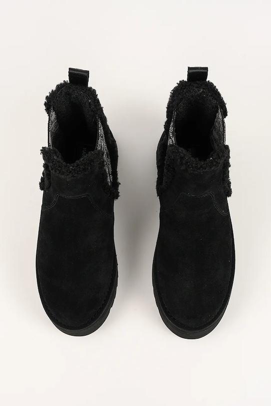 Зимние ботинки из коллекции Karl Lagerfeld. Изготовленные из комбинации замши и текстиля, с мягкой внутренней подкладкой, они обеспечивают исключительный комфорт. - Круглый, жёсткий носок. - Жесткий задник стабилизирует пятку и удерживает ногу в обуви, не давая ей выскальзывать во время движения. - Текстильная внутренняя часть комфортна для ног и облегчает содержание обуви в чистоте. - Петля сзади облегчает надевание и снятие обуви. - Приподнятый верх помогает укрепить ногу в области лодыжки, что защищает от неконтролируемых движений при движении по неровной поверхности. - Платформенная модель.