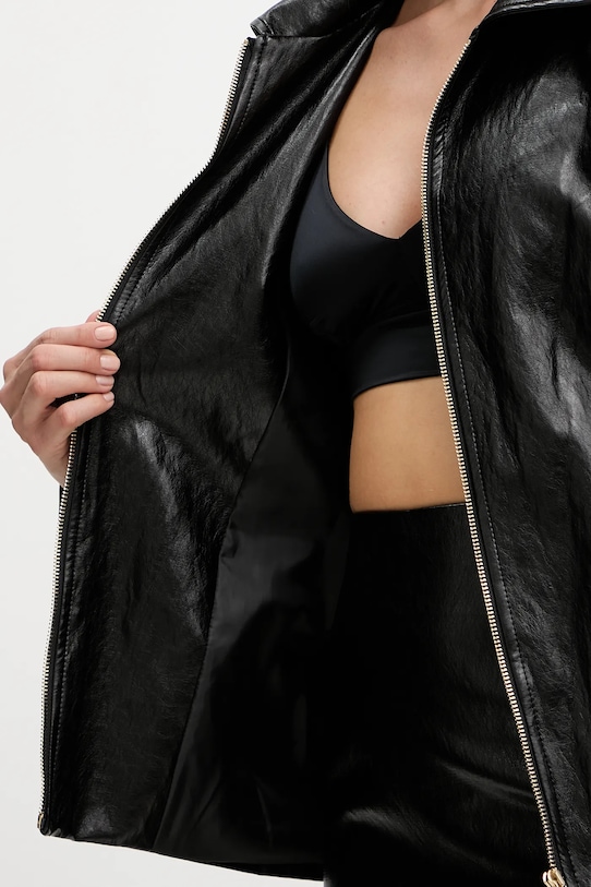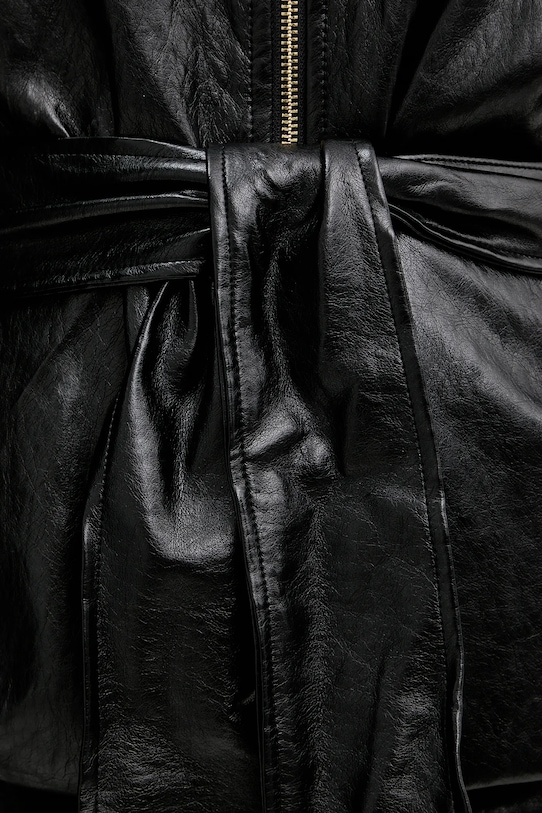 Куртка из коллекции Haveone. Модель без подкладки выполнена из экокожи. - Простой дизайн, не стесняющий движений. - Неутепленная модель с подкладкой. - Застежка-молния. - Модель с воротником. - Пояс на талии. - Накладные карманы. - В плечах вшиты подкладки. - Длина рукава: 54 см. - Длина: 61 см. - Ширина под мышками: 58 см. - Ширина плеч: 47 см. - Размеры указаны для размера: S.
