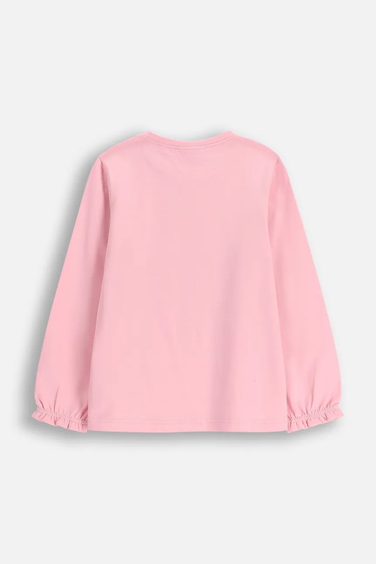 Детский лонгслив из коллекции Coccodrillo выполнен из набивного трикотажа. Модель выполнена из исключительно комфортного материала с высоким содержанием хлопка. - Продукция с сертификатом ECO 5 выдается продуктам, которые соответствуют ряду высоких требований, связанных с управлением производством. - Свободный покрой. - Круглый вырез. - Модель с принтом. - Модель с декоративными оборками.
