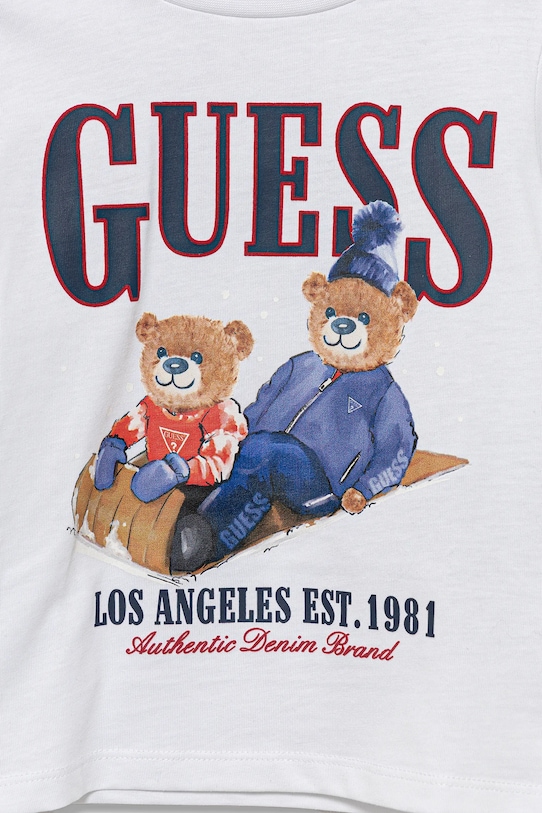 Этот детский лонгслив из коллекции Guess выполнен из тонкого эластичного трикотажа. Модель выполнена из дышащего хлопкового материала. - В состав продукта входят волокна органического хлопка, выращенного без использования вредных химикатов, химических пестицидов и искусственных удобрений. - Простой дизайн, не стесняющий движений. - Круглый ребристый вырез. - Длинный рукав. - Застегивается на короткую кнопку сзади. - Графический логотип бренда спереди. - Длина рукава: 33 см. - Длина: 38 см. - Ширина под мышками: 30 см. - Размеры указаны для роста: 88-96 см.