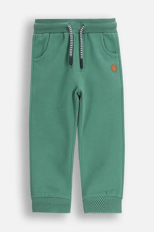 Детские спортивные штаны из коллекции Coccodrillo. Изготовлены из слегка эластичной ткани. - Продукция с сертификатом ECO 5 выдается продуктам, которые соответствуют ряду высоких требований, связанных с управлением производством. - Простой дизайн, не стесняющий движений. - Эластичный пояс со шнурками. - Два боковых накладных кармана. - Ножки отделаны удобными эластичными манжетами.