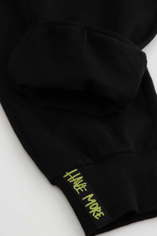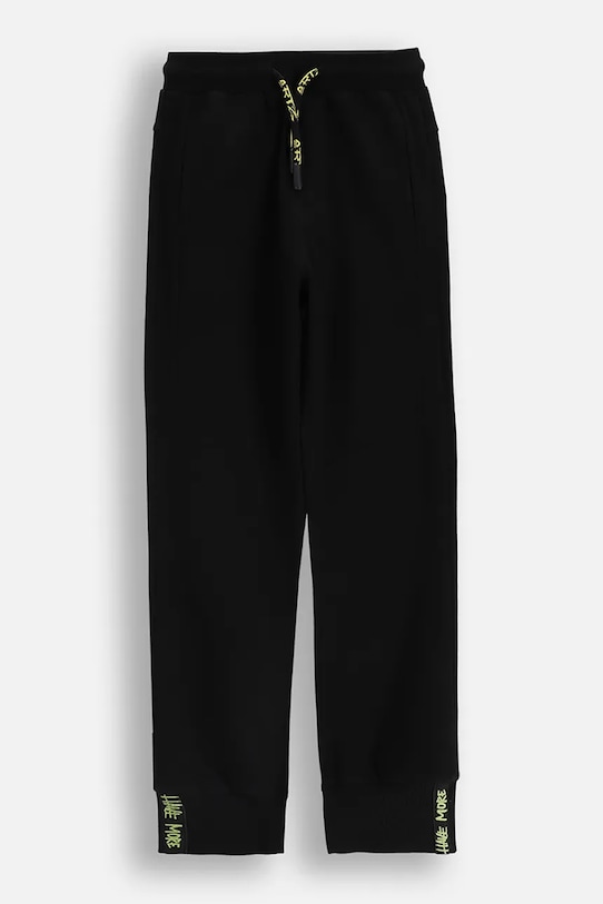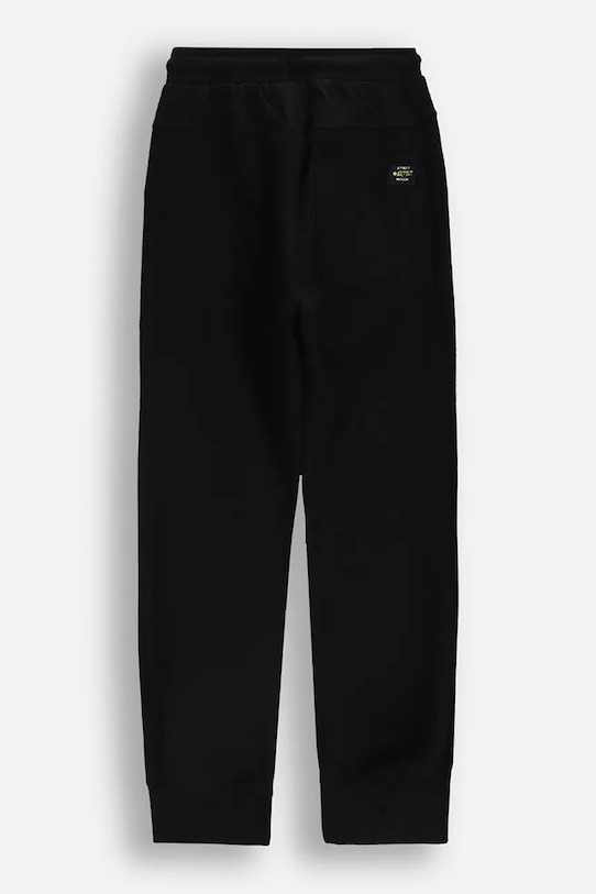 Детские брюки из коллекции Coccodrillo. Изготовлены из хлопкового трикотажа. - Приталенный крой. - Эластичный пояс со шнурками. - Накладной карман на спинке позволяет безопасно хранить мелкие предметы. - Два боковых накладных кармана. - Продукция с сертификатом ECO 5 выдается продуктам, которые соответствуют ряду высоких требований, связанных с управлением производством. - Ножки отделаны манжетами.