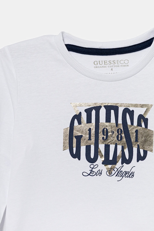 Детская футболка из коллекции Guess выполнена из тонкой, эластичной ткани. Модель выполнена из исключительно комфортного хлопкового материала. - Органический хлопок выращивается без использования вредных химикатов, химических пестицидов и искусственных удобрений. - Простой дизайн, не стесняющий движений. - Классический круглый вырез. - Длина рукава: 43 см. - Длина: 43 см. - Ширина под мышками: 34 см. - Размеры указаны для высоты: 118/122.