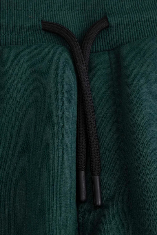 Детские брюки из коллекции Coccodrillo. Изготовлены из хлопкового трикотажа. - Продукция с сертификатом ECO 5 выдается продуктам, которые соответствуют ряду высоких требований, связанных с управлением производством. - Карманы для груза обеспечивают дополнительное место для хранения мелких предметов. - Два прорезных боковых кармана на молнии. - Регулировка ширины талии с помощью шнурков. - Ножки отделаны узкой эластичной манжетой. - Приталенный крой.