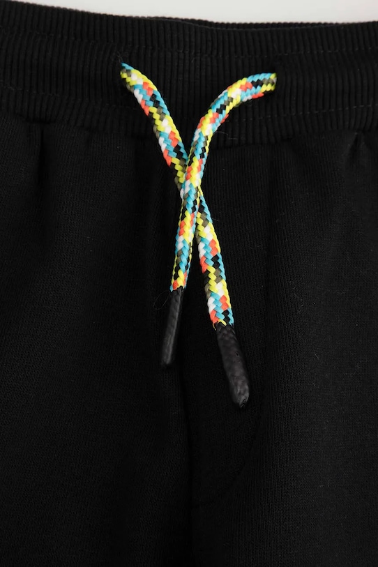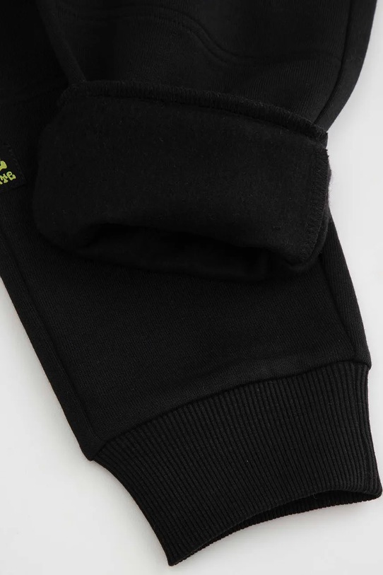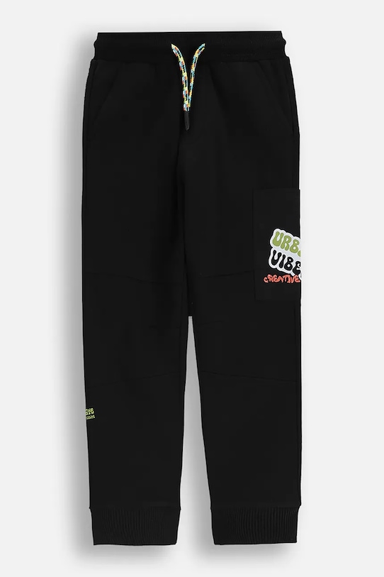 Детские брюки из коллекции Coccodrillo. Изготовлены из трикотажного полотна с высоким содержанием хлопка. - Продукция с сертификатом ECO 5 выдается продуктам, которые соответствуют ряду высоких требований, связанных с управлением производством. - Приталенный фасон. - Регулировка ширины талии с помощью шнурков. - Накладной карман на спинке позволяет безопасно хранить мелкие предметы. - Два боковых накладных кармана. - Ножки отделаны манжетами. Трикотажное полотно с начесом относится к группе перевязок с подкладкой. Благодаря способу отделки, изнаночная сторона материала образует характерный мягкий ворс, что делает его мягким, эластичным и исключительно приятным на ощупь, а также слегка эластичным в обоих направлениях. Этот трикотаж относится к толстому.