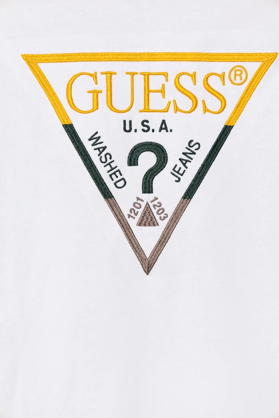 Этот детский лонгслив из коллекции Guess выполнен из трикотажного полотна с аппликацией. Изготовлен из исключительно комфортного хлопкового материала. - Органический хлопок выращивается без использования вредных химикатов, химических пестицидов и искусственных удобрений. - Простой дизайн, не стесняющий движений. - Классический круглый вырез. - Модель с декоративной вышивкой. - Длинный рукав. - Тонкий, эластичный трикотаж. - Длина рукава: 46 см. - Длина: 48 см. - Ширина под мышками: 36 см. - Размеры указаны для роста: 125-135 см.