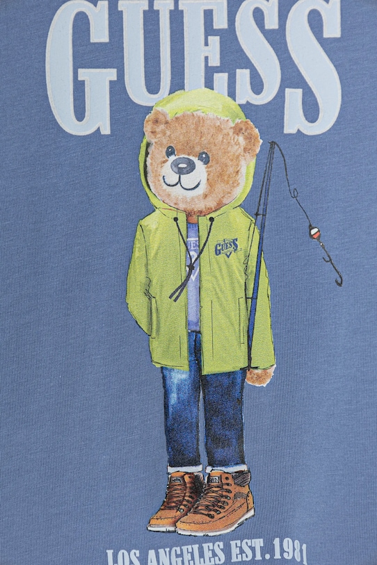 Детский лонгслив из коллекции Guess выполнен из тонкой эластичной ткани. Модель выполнена из исключительно комфортного хлопкового материала. - Изделие изготовлено из органического хлопка. - Простой дизайн, не стесняющий движений. - Классический круглый вырез. - Модель с принтом. - Длина рукава: 41 см. - Длина: 47 см. - Ширина под мышками: 34 см. - Размеры указаны для роста: 118 - 122 см.