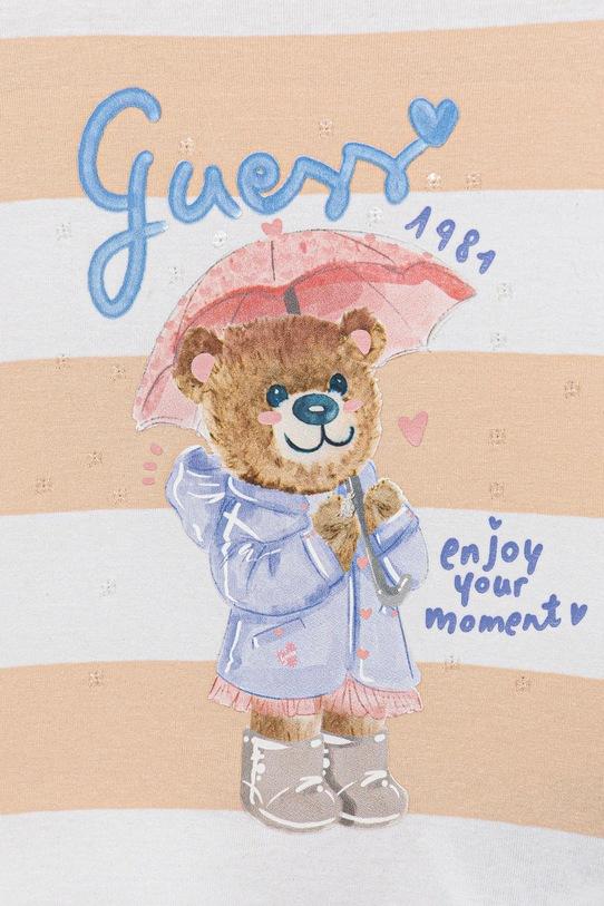 Детский лонгслив из коллекции Guess выполнен из эластичного трикотажа. Модель выполнена из исключительно комфортного материала с высоким содержанием хлопка. - Этот продукт частично изготовлен из органического хлопка. - Простой дизайн. - Классический круглый вырез. - Модель с печатью и аппликацией. - Длина: 38 см. - Длина рукава: 39 см. - Ширина под мышками: 31 см. - Размеры указаны для роста: 105-112 см.