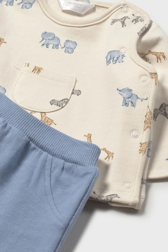 Этот комплект для новорожденного из коллекции Mayoral Newborn изготовлен из комбинации материалов и различных узоров. – Инициатива «Лучший хлопок». Изделия с этой маркировкой содержат не менее 50% хлопка от розничного продавца или бренда, участвующего в инициативе «Лучший хлопок» и инвестирующего в развитие BCI. - Простой дизайн, не стесняющий движений. - Классический круглый вырез. - Длинный рукав. - Эластичный пояс. - Узорчатое трикотажное полотно.