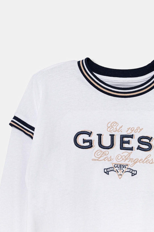 Детская футболка из коллекции Guess выполнена из тонкой, эластичной ткани. Модель выполнена из исключительно комфортного хлопкового материала. - Органический хлопок выращивается без использования вредных химикатов, химических пестицидов и искусственных удобрений. - Свободный крой, обеспечивающий полную свободу движений. - Классический круглый вырез. - Длина рукава (от горловины): 62 см. - Длина: 53 см. - Ширина под мышками: 46 см. - Размеры указаны для роста: 136/146.