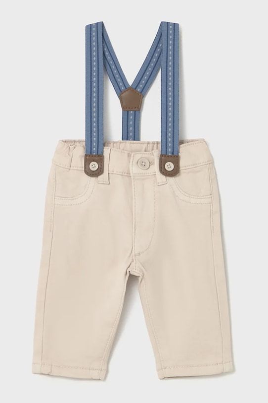 Детские штанишки из коллекции Mayoral Newborn. Изготовлены из гладкой ткани. – Инициатива «Лучший хлопок». Изделия с этой маркировкой содержат не менее 50% хлопка от розничного продавца или бренда, участвующего в инициативе «Лучший хлопок» и инвестирующего в развитие BCI. - Простой дизайн, не стесняющий движений. - Модель с подтяжками. - Модель с высокой талией, застежкой на пуговицы и молнию. - Модель с накладными карманами.