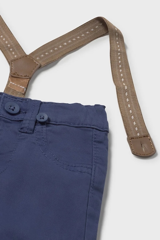 Детские штанишки из коллекции Mayoral Newborn. Изготовлены из гладкой ткани. – Инициатива «Лучший хлопок». Изделия с этой маркировкой содержат не менее 50% хлопка от розничного продавца или бренда, участвующего в инициативе «Лучший хлопок» и инвестирующего в развитие BCI. - Простой дизайн, не стесняющий движений. - Модель с подтяжками. - Модель с высокой талией, застежкой на пуговицы и молнию. - Модель с накладными карманами.