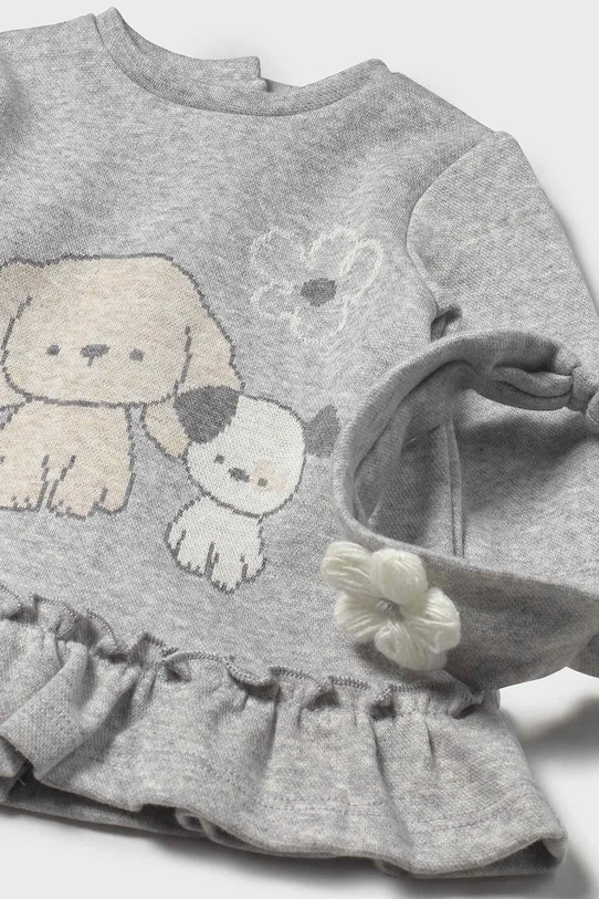 Платье для малыша из коллекции Mayoral Newborn. Это расклешенное платье выполнено из трикотажного полотна с принтом. В комплект входит повязка на голову. – Инициатива «Лучший хлопок». Изделия с этой маркировкой содержат не менее 50% хлопка от розничного продавца или бренда, участвующего в инициативе «Лучший хлопок» и инвестирующего в развитие BCI. - Круглый вырез. - Длинный рукав. - Застежка-кнопка. - Модель с декоративной оборкой. - Модель с принтом.