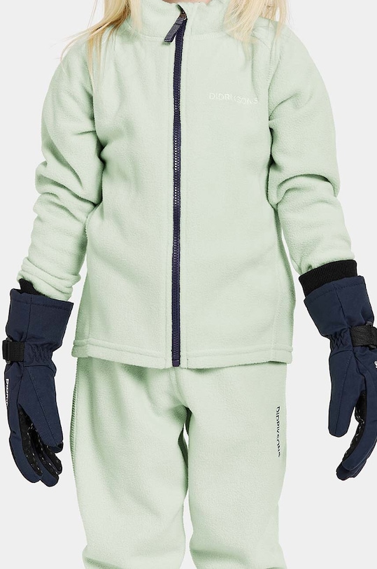 Детские горнолыжные перчатки из коллекции Didriksons. Изготовлены из материала с утеплителем. - Возможность застегнуть перчатки друг на друга предотвращает их потерю. - Регулируемый ремешок позволяет легко отрегулировать обхват запястья. - Внутренняя часть отделана мягким, приятным для кожи материалом, повышающим защиту от холода.