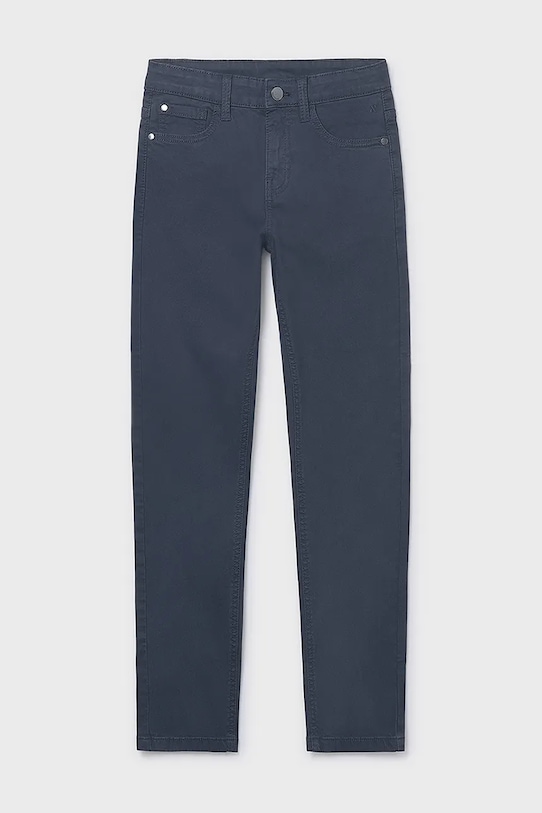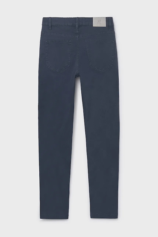 Детские брюки из коллекции Mayoral из гладкой ткани. Модель выполнена из исключительно комфортного материала с высоким содержанием хлопка. – Инициатива «Лучший хлопок». Изделия с этой маркировкой содержат не менее 50% хлопка от розничного продавца или бренда, участвующего в инициативе «Лучший хлопок» и инвестирующего в развитие BCI. - Приталенный крой. - Модель со стандартной талией, застежкой на пуговицы и молнию. - Три накладных кармана спереди. - Крой с зауженными брючинами, не стесняющими движений.