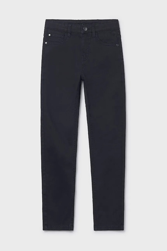 Детские брюки из коллекции Mayoral из гладкой ткани. Модель выполнена из исключительно комфортного материала с высоким содержанием хлопка. – Инициатива «Лучший хлопок». Изделия с этой маркировкой содержат не менее 50% хлопка от розничного продавца или бренда, участвующего в инициативе «Лучший хлопок» и инвестирующего в развитие BCI. - Приталенный крой. - Модель со стандартной талией, застежкой на пуговицы и молнию. - Три накладных кармана спереди. - Крой с зауженными брючинами, не стесняющими движений.