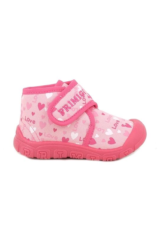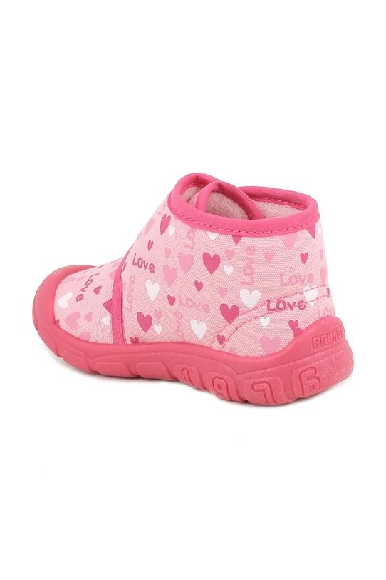 Детские тапочки из коллекции Primigi, изготовленные из текстильного материала. Модель оснащена кожаной стелькой, которая обеспечивает комфорт стопе, предотвращает натирание, натирание и появление неприятного запаха. - Круглый, прорезиненный носок. - Съемная кожаная стелька. - Уютный салон. - Застежка-липучка позволяет легко надевать и снимать обувь. - Приподнятый верх помогает укрепить ногу в области лодыжки, что защищает от неконтролируемых движений при движении по неровной поверхности. - Нескользящая резиновая подошва.