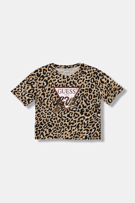 Эта детская футболка из коллекции Guess выполнена из тонкой, эластичной ткани. Эта модель выполнена из исключительно комфортного и дышащего материала, идеально подходящего для теплого времени года. Этот продукт частично изготовлен из сертифицированного органического хлопка, выращенного и собранного с растений, не содержащих ГМО, без использования удобрений и пестицидов. Процесс производства органического хлопка более экологичен, а изделия из него полезнее для здоровья. - Простой дизайн, не стесняющий движений. - Короткий рукав. - Классический круглый вырез. - Модель с принтом. - Длина: 49 см. - Ширина под мышками: 47 см. - Размеры указаны для роста: 156 - 166 см.
