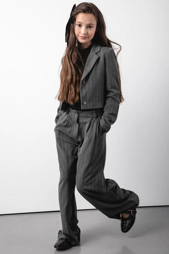 Детские брюки из коллекции Coccodrillo. Изготовлены из тонкой, слегка тянущейся ткани. - Продукция с сертификатом ECO 5 выдается продуктам, которые соответствуют ряду высоких требований, связанных с управлением производством. - Модель со стандартной талией, застежкой на пуговицы и молнию. - Два накладных кармана спереди. - Два накладных кармана на ягодицах. - Внутренняя регулировка ширины на талии. - Широкие штанины.