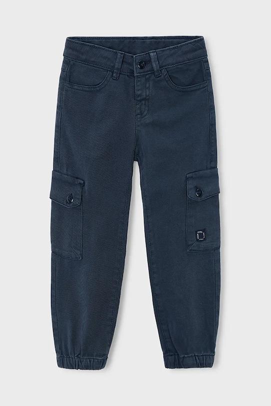 Детские брюки из коллекции Mayoral из тонкой, слегка эластичной ткани. Модель выполнена из исключительно комфортного материала с высоким содержанием хлопка. - Для производства использовался хлопок, полученный в результате экологически устойчивого производства, что обеспечивает минимально возможное потребление воды и экологически безопасное окрашивание. - Брюки слегка приталенные на бедрах. - Крой с зауженными брючинами, не стесняющими движений. - Ножки отделаны удобными эластичными манжетами. - Два накладных кармана спереди. - Карманы для груза обеспечивают дополнительное место для хранения мелких предметов. - Врезной, отстегивающийся карман сзади.