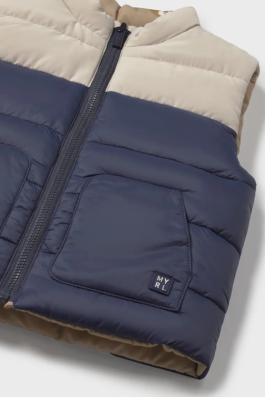 Этот двусторонний жилет из коллекции Mayoral изготовлен из стеганой ткани с синтетическим утеплителем для дополнительного комфорта в прохладную погоду. - Простой дизайн, не стесняющий движений. - Удобная застежка-молния позволяет легко надевать и снимать. - Поднятый воротник обеспечивает дополнительную защиту от холода. - Накладные карманы. - Двусторонняя модель. - Лоскутное шитье.