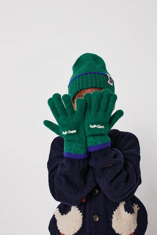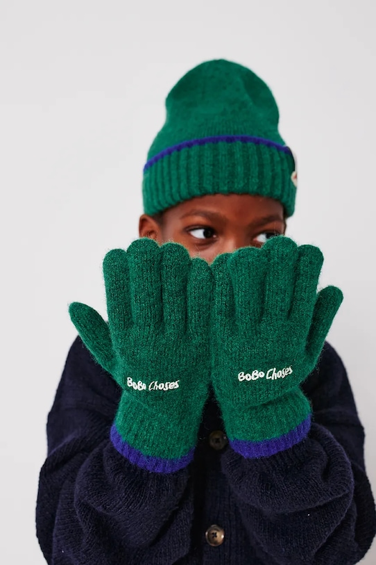 Детские перчатки из смесовой шерсти Bobo Choses, зеленый