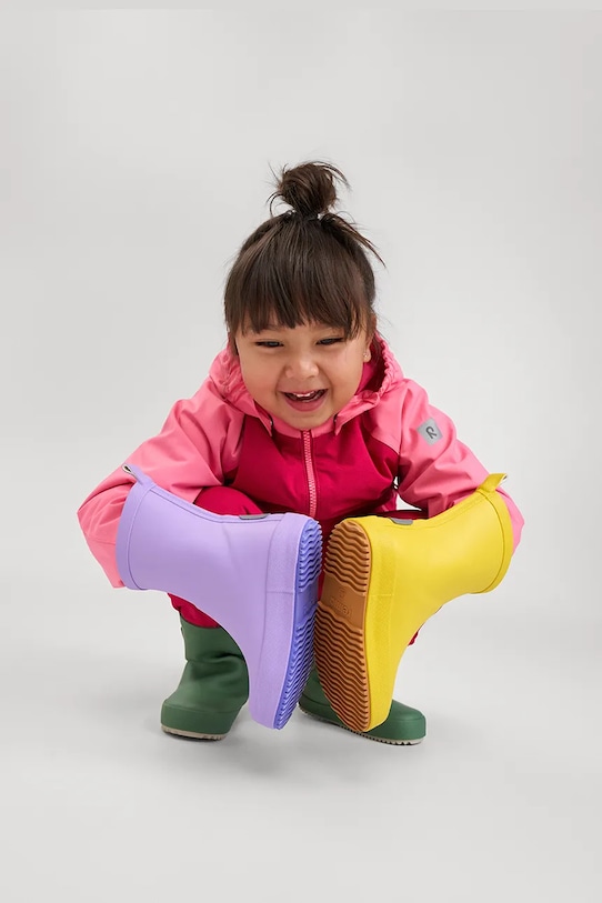Эти детские резиновые сапоги из коллекции Reima изготовлены из гладкого материала. Верх из непористого материала легко чистится влажной тканью. - Круглый, слегка утолщенный носок. - Жесткий задник стабилизирует пятку и удерживает ногу в обуви, не давая ей выскальзывать во время движения. - Резиновая подошва прочная и устойчивая к повреждениям. - Текстильная внутренняя часть комфортна для ног и облегчает содержание обуви в чистоте. - Петля сзади облегчает надевание и снятие обуви. - Модель изготовлена из материалов, обеспечивающих сухость при умеренных дождях.