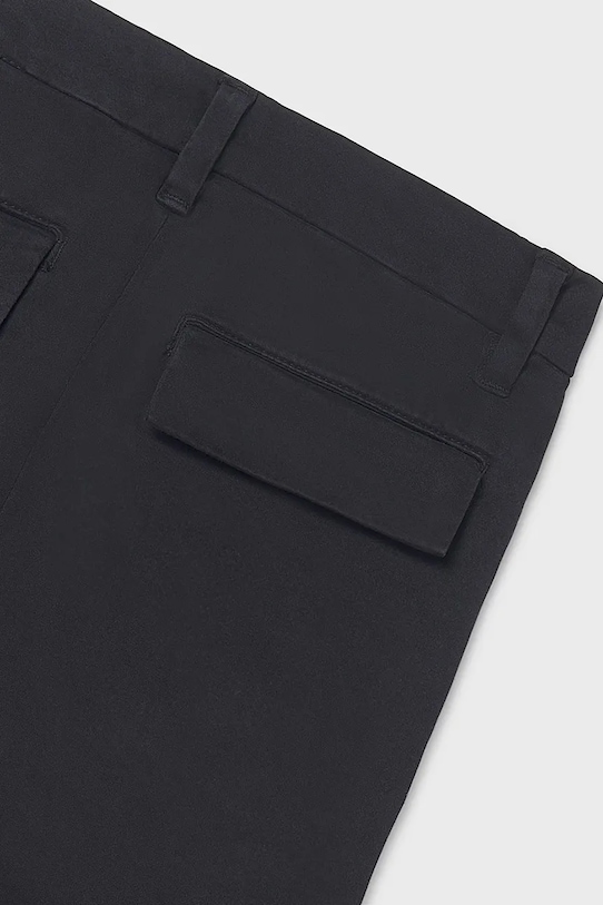 Детские брюки из коллекции Mayoral из гладкой ткани. Модель выполнена из исключительно комфортного материала с высоким содержанием хлопка. - Простой дизайн, не стесняющий движений. - Модель со стандартной талией, застежкой на пуговицы и молнию. - Два боковых накладных кармана. - Карманы для груза обеспечивают дополнительное место для хранения мелких предметов.