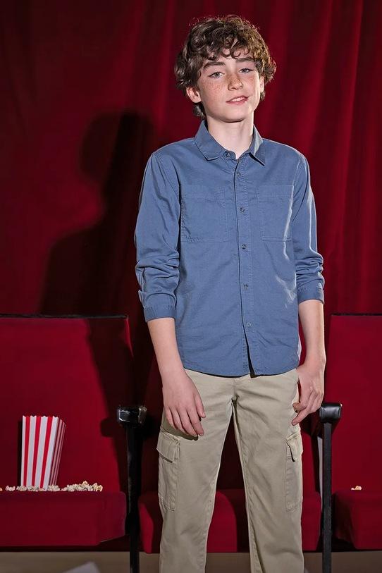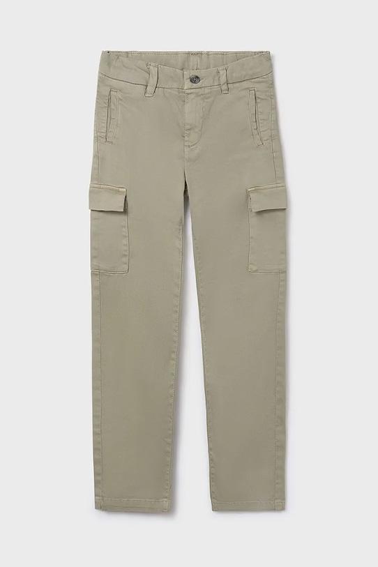 Детские брюки из коллекции Mayoral из гладкой ткани. Модель выполнена из исключительно комфортного материала с высоким содержанием хлопка. - Простой дизайн, не стесняющий движений. - Модель со стандартной талией, застежкой на пуговицы и молнию. - Два боковых накладных кармана. - Карманы для груза обеспечивают дополнительное место для хранения мелких предметов.