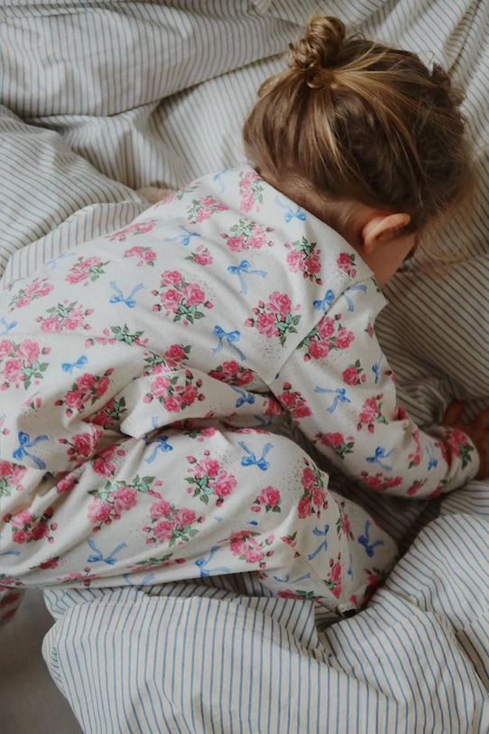 Детский комплект из блузки и брюк из коллекции Konges Sløjd. Изготовлен из ткани с рисунком. Этот продукт изготовлен из сертифицированного органического хлопка, выращенного и собранного с растений, не содержащих ГМО, без использования удобрений и пестицидов. Процесс производства органического хлопка более экологичен, и изделия из него также более экологичны. Наш хлопок сертифицирован по стандарту GOTS (Глобальный стандарт органического текстиля), что гарантирует его производство с заботой об окружающей среде и соблюдением прав работников. - Простой дизайн, не стесняющий движений. - Классический круглый вырез. - Длинный рукав. - Эластичный пояс. - Обхват талии обычный.