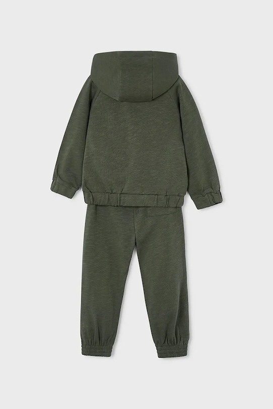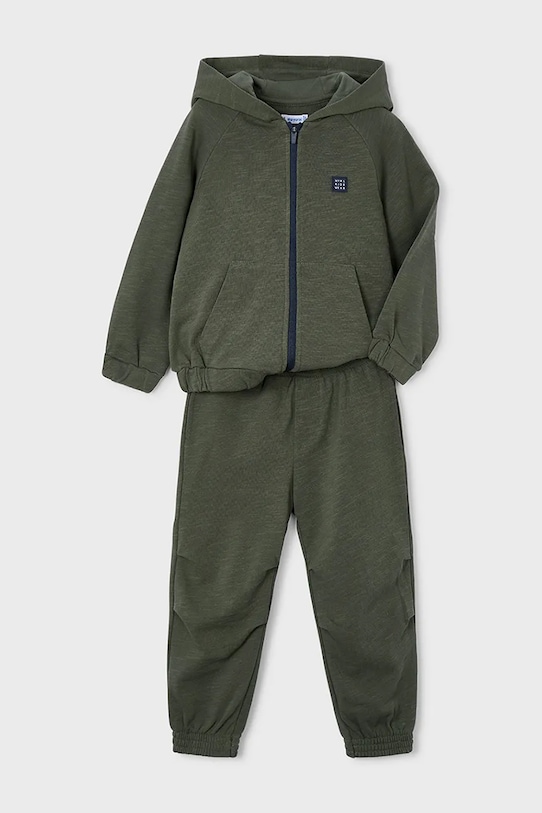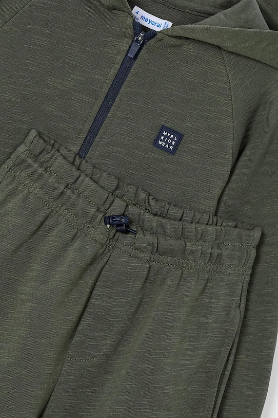 Детский спортивный костюм из коллекции Mayoral. Изготовлен из гладкого трикотажного полотна. - В комплект входят толстовка и брюки. - Длинный рукав. - Модель с капюшоном. - Застежка-молния. - Эластичный пояс со шнурками. - Свободный крой, обеспечивающий полную свободу движений. - Рукава реглан благодаря своей конструкции обеспечивают большую свободу движений. - Рукава и нижний край отделаны удобными эластичными манжетами.