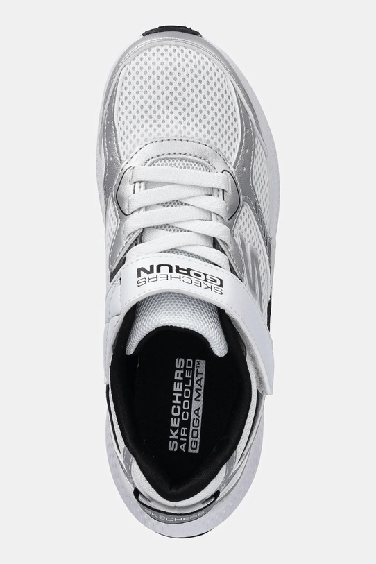 Эти детские кроссовки из коллекции Skechers изготовлены из комбинации текстиля и экокожи. Текстильная стелька обеспечивает комфорт стопе и позволяет легко содержать кроссовки в чистоте. - Модель предназначена для машинной стирки. - Air-Cooled Goga Mat - дышащая стелька с высокой амортизацией. - Круглый, слегка утолщенный носок. - Усиленный задник с мягким наполнителем защищает пятку от истирания. - Эластичные шнурки и застежка на липучке позволяют легко надевать и снимать обувь. - Резиновая подошва чрезвычайно прочная и устойчивая к повреждениям. - Подошва NON-MARKING не оставляет следов и обеспечивает отличное сцепление. - Длина вставки: 23 см. - Размеры указаны для размера: 35.