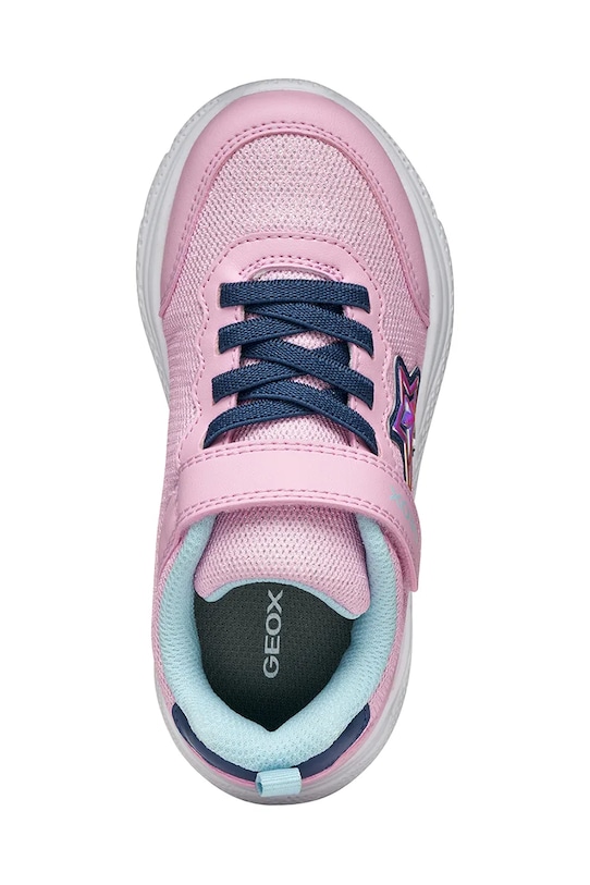 Детские кроссовки из коллекции Geox. Изготовлены из комбинации текстиля и синтетических материалов. - Geox Respira System: в них реализована технология Geox Respira, которая благодаря трехслойной подошве с дышащей системой перфорации улучшает вентиляцию, тем самым заботясь о здоровье ваших ног и обеспечивая комфорт при использовании обуви. - Круглый, слегка утолщенный носок. - Слегка усиленный верхний воротник. - Слегка усиленный задник. - Петля сзади облегчает надевание и снятие обуви. - Съемная, легко моющаяся вставка. - Декоративные детали. - Модель со шнуровкой и застежкой на липучке. - Система амортизации.