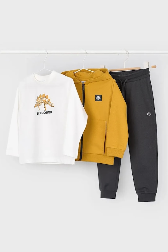 Этот спортивный костюм из коллекции Mayoral выполнен из трикотажного полотна. Модель выполнена из исключительно комфортного материала с высоким содержанием хлопка. – Инициатива «Лучший хлопок». Изделия с этой маркировкой содержат не менее 50% хлопка от розничного продавца или бренда, участвующего в инициативе «Лучший хлопок» и инвестирующего в развитие BCI. - Простой дизайн, не стесняющий движений. - Застежка-молния. - Модель с капюшоном. - Рукава и нижний край отделаны удобными эластичными манжетами. - Два прорезных боковых кармана на молнии.