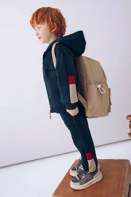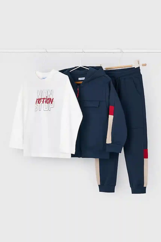Детский спортивный костюм из коллекции Mayoral. Изготовлен из трикотажного полотна. – Инициатива «Лучший хлопок». Изделия с этой маркировкой содержат не менее 50% хлопка от розничного продавца или бренда, участвующего в инициативе «Лучший хлопок» и инвестирующего в развитие BCI. - Простой дизайн, не стесняющий движений. - Длинный рукав. - Эластичный пояс со шнурками. - Рукава и нижний край отделаны удобными эластичными манжетами.