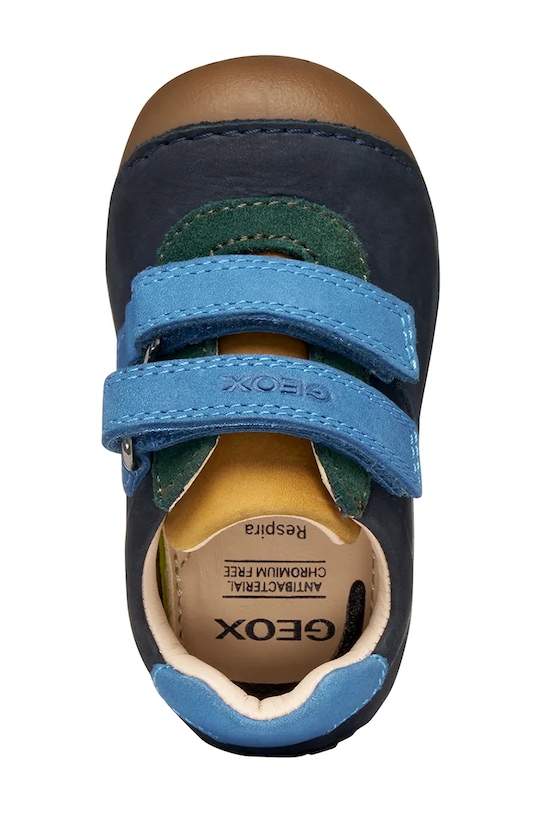 Детские туфли из коллекции Geox изготовлены из натуральной кожи. Они оснащены кожаной подкладкой, которая обеспечивает комфорт ногам и предотвращает натирание, потертости и появление неприятного запаха. - Легкая подошва Flexy System обеспечивает свободу движений благодаря своей гибкости. - Технология Geox Respira благодаря специальной дышащей и водонепроницаемой мембране пропускает влагу и обеспечивает водонепроницаемость. - Круглый нос. - Модель с кожаной внутренней частью, которая удобна для стопы и предотвращает натирание, потертости и появление неприятного запаха. - Антибактериальная стелька. - Кожаная стелька изготовлена без использования хрома. - Застежка-липучка. - Жесткий верх обеспечивает устойчивость. - Уютный салон. - Декоративные детали.