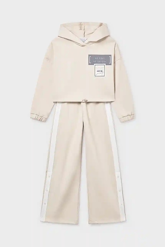 Этот детский спортивный костюм из коллекции Mayoral выполнен из тонкого, слегка эластичного трикотажа. Полиэстер обеспечивает высокую устойчивость к сминанию. - Свободный крой, обеспечивающий полную свободу движений. - Крой рукава со спущенной линией плеча не ограничивает подвижность. - Встроенный капюшон обеспечивает дополнительное тепло и защиту при необходимости. - Нижний край отделан кулиской со стопором, что обеспечивает индивидуальную посадку. - Рукава отделаны ребристыми манжетами. - Брюки свободные в области бедер и ягодиц. - Широкий эластичный пояс. - Застежки по бокам штанин.
