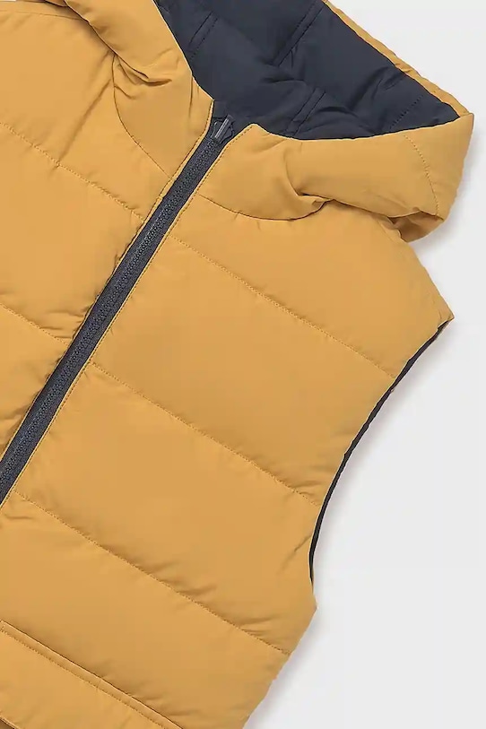 Этот двухсторонний детский жилет из коллекции Mayoral имеет лёгкий утеплитель и изготовлен из стёганой ткани. Он двусторонний, что обеспечивает полную функциональность с обеих сторон. - Изделие содержит переработанные волокнистые материалы. - Простой дизайн, не стесняющий движений. - Удобная застежка-молния позволяет легко надевать и снимать. - Поднятый воротник и несъемный капюшон обеспечивают дополнительную защиту от холода. - Два боковых накладных кармана. - Легкоутепленная модель с подкладкой.