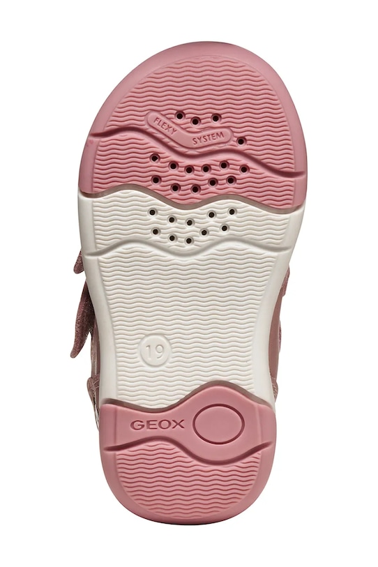 Детские туфли из коллекции Geox изготовлены из комбинации замши и искусственной кожи. Лёгкие и удобные, идеально подходят для повседневной носки. - Geox Respira System: в них реализована технология Geox Respira, которая благодаря трехслойной подошве с дышащей системой перфорации улучшает вентиляцию, тем самым заботясь о здоровье ваших ног и обеспечивая комфорт при использовании обуви. - Легкая подошва Flexy System обеспечивает свободу движений благодаря своей гибкости. - Застежка-липучка. - Кожаная стелька комфортна для стопы и предотвращает натирание, потертости и появление неприятного запаха. - Резиновая подошва прочная и устойчивая к повреждениям.