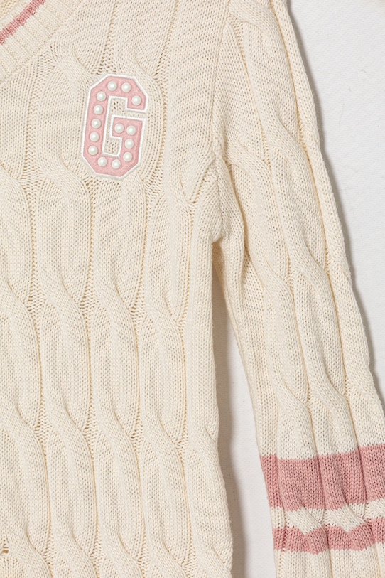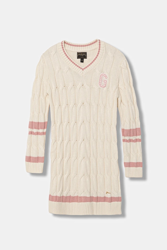 Это детское платье из коллекции Guess выполнено из эластичного трикотажного полотна. Модель выполнена из мягкого и приятного на ощупь материала. Этот продукт частично изготовлен из сертифицированного органического хлопка, выращенного и собранного с растений, не содержащих ГМО, без использования удобрений и пестицидов. Процесс производства органического хлопка более экологичен, а изделия из него полезнее для здоровья. - Приталенный крой, не стесняющий движений. - Декоративный, заостренный вырез. - Рукава и нижний край отделаны удобными эластичными манжетами. - Модель с декоративной аппликацией. - Модель без подкладки. - Длина рукава: 58 см. - Длина: 82 см. - Ширина под мышками: 42 см. - Размеры указаны для роста: 147 - 157 см.