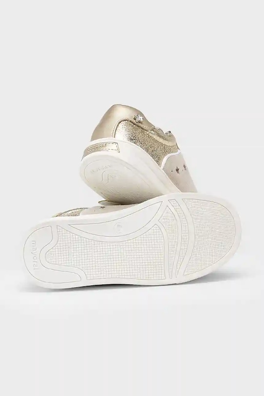 Детские кроссовки из коллекции Mayoral. Изготовленные из комбинации экокожи и натуральной кожи, эти лёгкие и удобные кроссовки идеально подойдут для повседневной носки. - Круглый, слегка утолщенный носок. - Резиновая подошва прочная и устойчивая к повреждениям. - Жесткий задник стабилизирует пятку и удерживает ногу в обуви, не давая ей выскальзывать во время движения. - Текстильная внутренняя часть комфортна для ног и облегчает содержание обуви в чистоте. - Кожаная стелька комфортна для стопы и предотвращает натирание, потертости и появление неприятного запаха. - Классическая шнуровка позволяет индивидуально подогнать обувь по ноге.