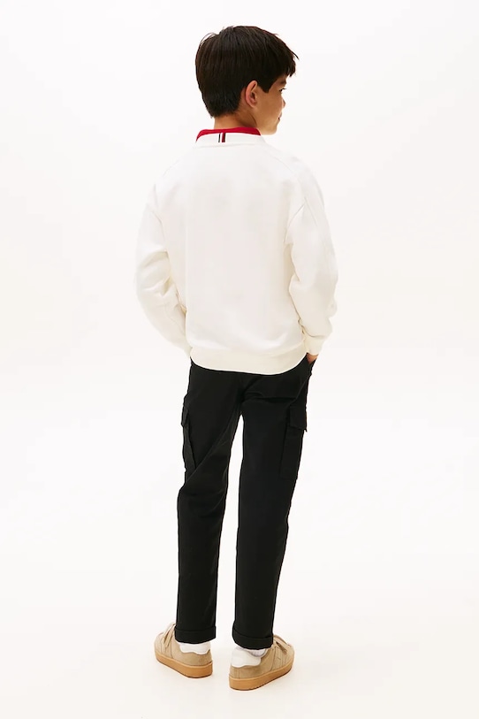 Детская толстовка из коллекции Tommy Hilfiger выполнена из эластичного трикотажа. Модель выполнена из исключительно комфортного, дышащего материала с высоким содержанием хлопка. - Свободный крой, обеспечивающий полную свободу движений. - Круглый ребристый вырез. - Длинный рукав. - Крой рукава со спущенной линией плеча не ограничивает подвижность. - Рукава и низ изделия отделаны манжетами для защиты от неблагоприятных погодных условий. - Графический логотип бренда спереди.