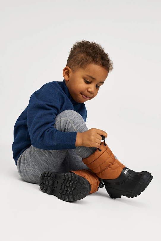 Эти детские зимние ботинки из коллекции Reima имеют лёгкий утеплитель и изготовлены из комбинации синтетических и текстильных материалов. Они также обладают повышенной водонепроницаемостью. Водостойкость означает повышенную устойчивость к воздействию воды. Изделие сохраняет свои свойства при контакте с водой, что обеспечивает больший комфорт благодаря более низкому порогу водопроницаемости, но не гарантирует полной водонепроницаемости. - Прорезиненная область на носке ботинка обеспечивает дополнительную защиту пальцев ног. - Жесткий задник стабилизирует пятку и удерживает ногу в обуви, не давая ей выскальзывать во время движения. - Резиновая подошва прочная и устойчивая к повреждениям. - Текстильная внутренняя часть комфортна для ног и облегчает содержание обуви в чистоте. - Верхний край отделан завязками, позволяющими регулировать окружность по ширине голенища. - Светоотражающие элементы повышают видимость и безопасность в темное время суток.