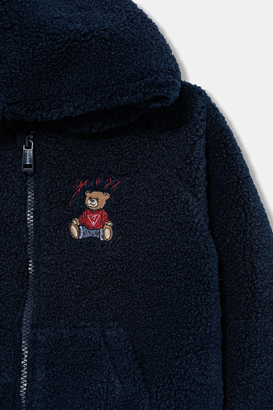 Эта детская толстовка с капюшоном из коллекции Guess выполнена из гладкого трикотажа. Полиэстер обеспечивает повышенную устойчивость к сминанию. - Простой дизайн. - Застежка-молния. - Накладные карманы. - Плотная, эластичная трикотажная ткань. - Отделка ребер. - Длина рукава (от капюшона): 41 см. - Длина: 39 см. - Ширина под мышками: 37 см. - Размеры указаны для роста: 96-104 см.