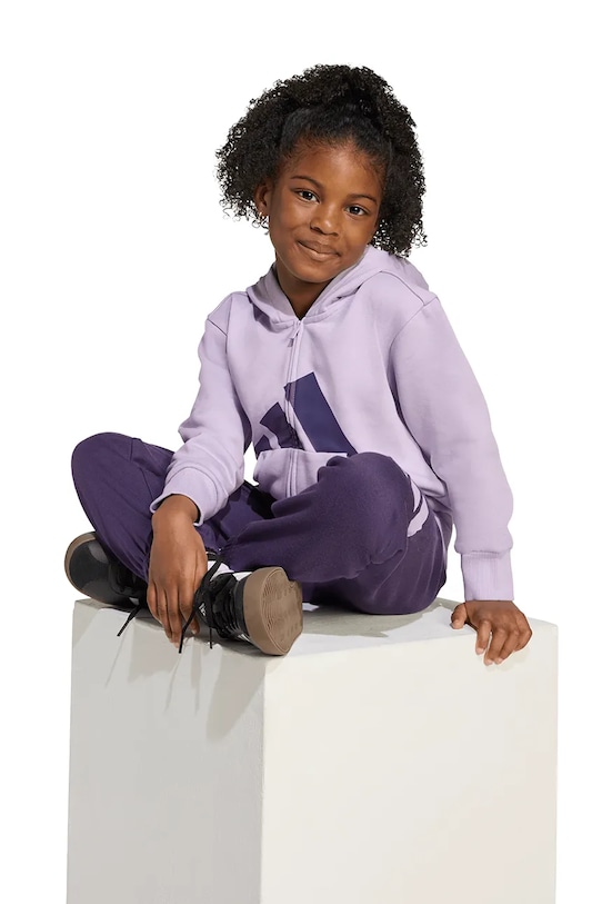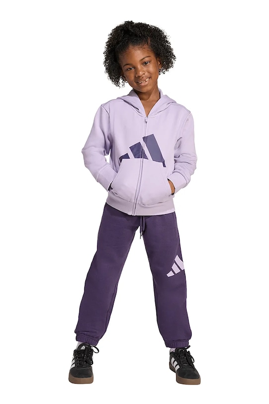 Этот спортивный костюм Adidas выполнен из трикотажного полотна. Мягкая внутренняя подкладка обеспечивает высокий комфорт. - Комплект состоит из толстовки и брюк. - Простой дизайн, не стесняющий движений. - Модель с капюшоном. - Застежка-молния. - Два боковых накладных кармана. - Рукава и нижний край отделаны эластичной тесьмой, благодаря чему изделие лучше прилегает к телу и удобно в носке. - Модель с принтом. - Эластичный пояс и дополнительная регулировка ширины с помощью шнурков для предотвращения сползания во время движения. - Ножки отделаны удобными эластичными манжетами. - Длина рукава: 39,5 см. - Длина: 43 см. - Ширина под мышками: 39 см. - Ширина талии: 29 см. - Ширина бедер: 36 см. - Высота талии: 23 см. - Ширина штанины: 25 см. - Длина штанины: 72 см. - Размеры указаны для роста: 128 см.