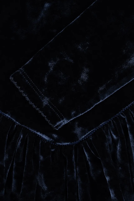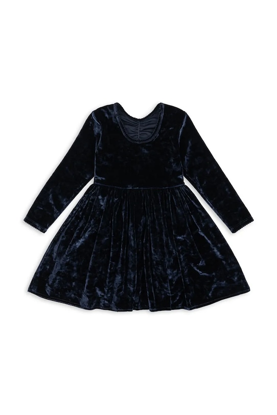 Это детское платье из коллекции Konges Sløjd изготовлено из бархата. Изделие содержит переработанные волокна. - GRS (Global Recycle Standard) - сертификат, гарантирующий, что продукт изготовлен из переработанных материалов, произведен с соблюдением принципов устойчивого развития на каждом этапе производства. - Расклешенный крой. - Классический круглый вырез. - Длинный рукав.