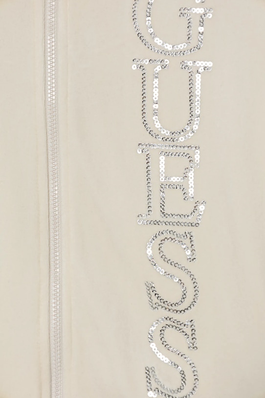 Детский спортивный костюм из коллекции Guess. Изготовлен из велюрового трикотажа. - Содержит переработанный пластик. - Простой дизайн, не стесняющий движений. - Застежка-молния. - Длинный рукав. - Высокая талия с эластичным поясом. - Тонкий, эластичный трикотаж. - Отделка ребер. - Длина рукава: 36 см. - Ширина талии: 26 см. - Ширина бедер: 34 см. - Высота талии: 22 см. - Ширина штанины внизу: 10 см. - Ширина штанины: 18 см. - Длина штанины: 61 см. - Длина: 40 см. - Ширина под мышками: 35 см. - Размеры указаны для роста: 105-112 см.