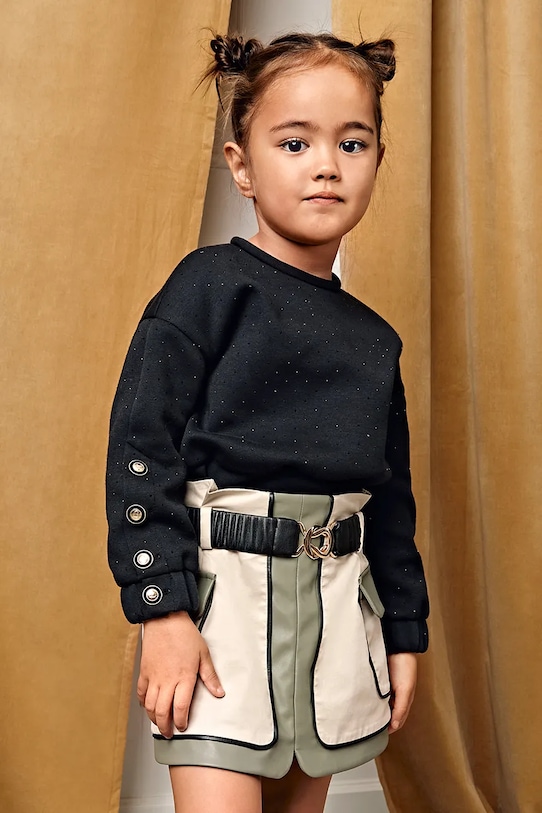 Модель прямого кроя, выполненная из комбинации контрастных материалов.
